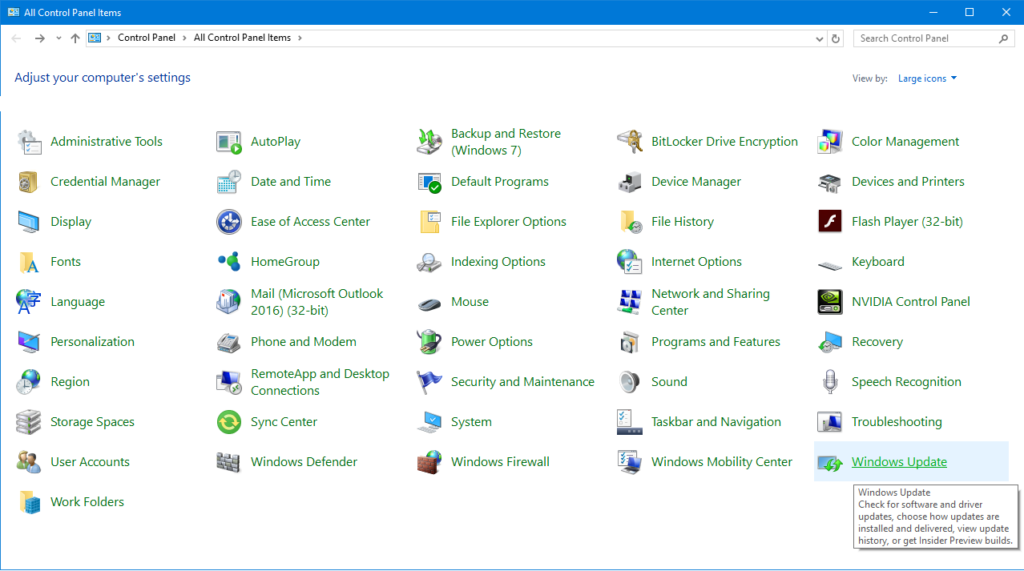 Abra el panel de control y haga clic en Actualizaciones de Windows.